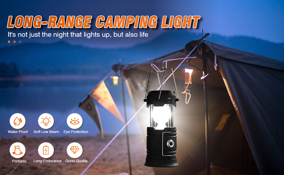 Camp Light Portable Solar USB Rechargeable Camping Lantern Hanging Solar-Powered Tent Light Outdoor Camp Light with USB Charging Rechargeable Torch Light for Camping Solar-Powered Hangable Tent Lamp Led Lighting