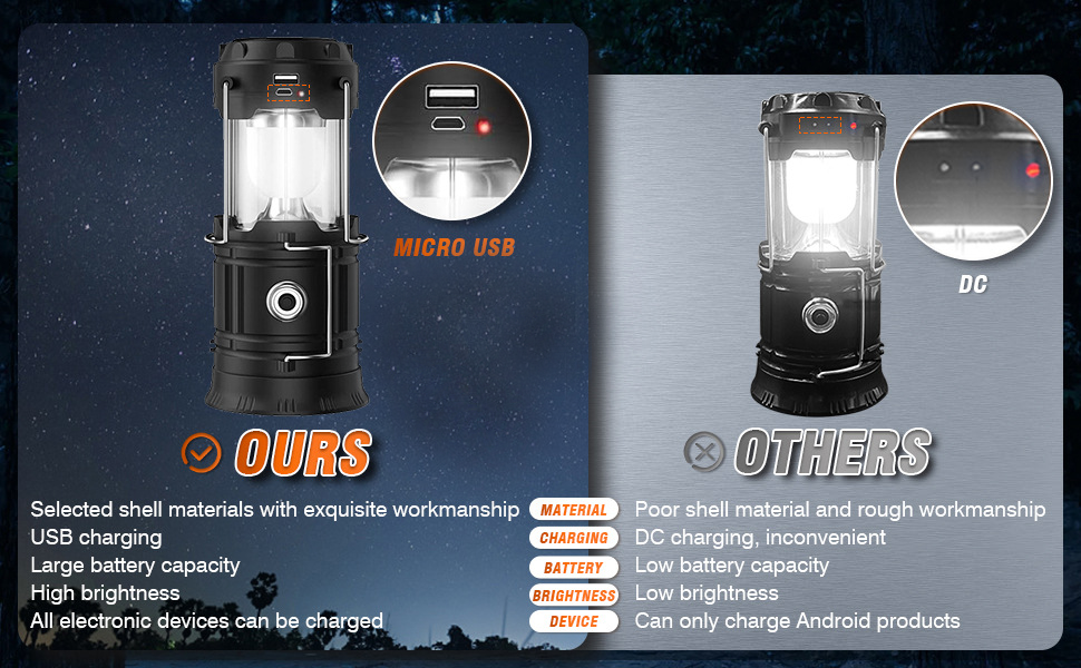 When you pull it open, it becomes a revolving lantern. When you close it, it turns off the light automatically. It has a solar panel and can be automatically charged in the light. There is also a super bright flashlight underneath, which is very convenient to carry when walking at night. When the mobile phone is out of power outdoors, it can also be used as a power bank to charge the mobile phone in an emergency. It can be used for outdoor camping, mountaineering or night travel.